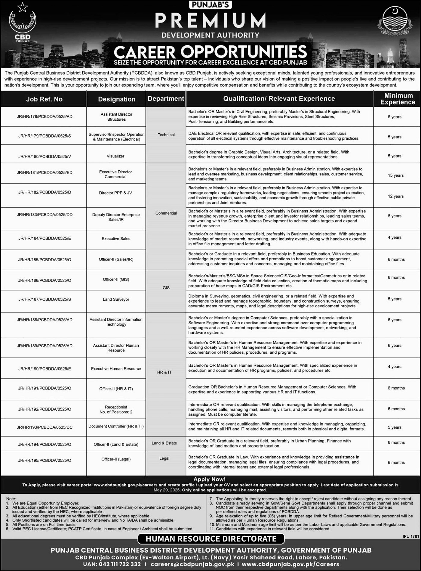 Login to Send MessageAre you looking for govt jobs in Lahore? The Punjab Central Business District Development Authority (PCBDDA) has new job openings for 2025. These are government jobs where you can work full-time. If you want to grow and learn at work, this is a good place to start. If you are searching for jobs in Pakistan, today jobs, Pakistan jobs bank, or jobs near me, this is a great chance for you. You can also be one of the first 25 people to apply online.